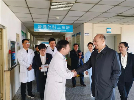 隋锡君先后到门诊、急诊、部分病房实地考察,听取院党委书记冯巧军和院长杨艳关于就医环境和服务设施改善情况等方面工作汇报,并与院领导班子和部分科室负责同志进行座谈,听取大家的意见和建议。