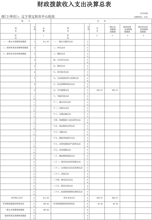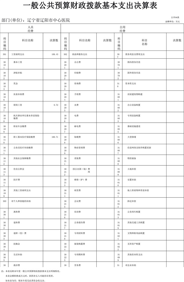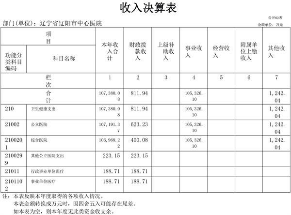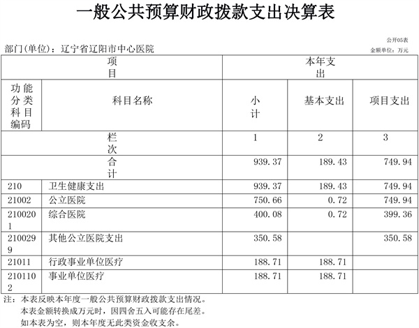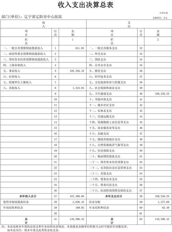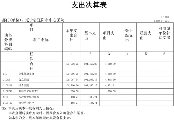 辽宁省辽阳市中心医院2022年决算公开