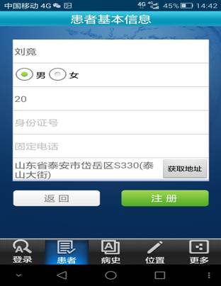 使用前请打开手机的“移动数据”和“GPS”网络,完成患者信息登记。