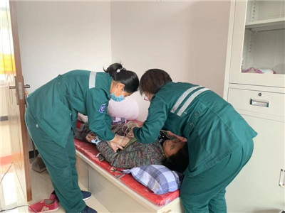 得知村中有两位百岁老人,医护人员登门为老人仔细检查身体。同时告知他们的家人,百岁以上老人随时可以到市中心医院接受免费治疗。