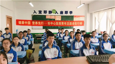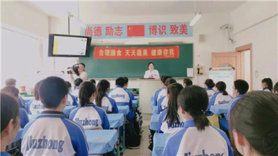 为进一步提升公众对食物营养、平衡膳食基本原则的认识,做好《中国居民膳食指南》的宣传教育,推动国民健康饮食习惯的形成和巩固,市中心医院院组织疾控科、营养科、消化科医生来到市第九中学,就健康营养及食品安全知识进行广播宣教及现场讲座,提醒广大师生,营养是健康的基础,健康饮食应保证“每餐有蔬菜、天天有水果”。