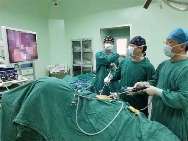 接受减人减孔腹腔镜下直肠癌根治性切除术的患者是一位68岁的男性,入院经查确诊为直肠癌。普外三科已常规开展腹腔镜下直肠癌根治性切除术300多例,针对患者的实际情况,科主任王英飞决定为患者实施减人减孔腹腔镜下直肠癌根治性切除术,由原来三人合作、在腹部开5孔的术式改为由两人合作、在腹部开三个孔的方式实施手术,虽然操作难度增大,但能够为患者节省耗材费用、减小创伤面积、减少体表瘢痕,利于患者更快的恢复。经过一个半小时的努力,手术获得成功,患者术后恢复良好。