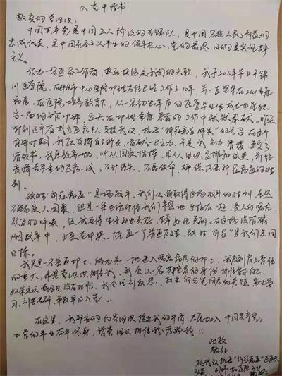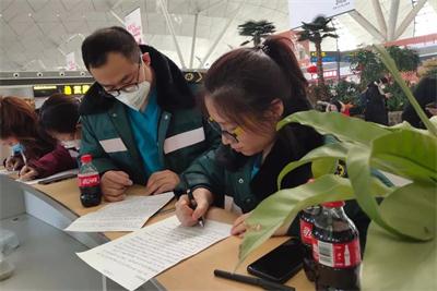 赴武汉医疗队员张海兴、石旭满在机场书写下入党志愿书