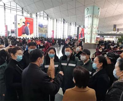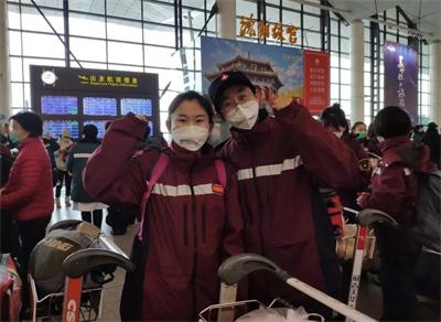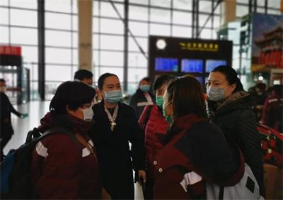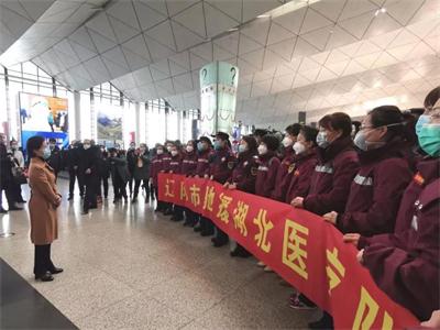 2月9日早上六点,市第三批驰援湖北医疗队29名队员在我院机关楼前集结,我院12名医护队员准时到到位。他们是:赵洪露、陈丽君、刘思德、赵红艳、陈冬梅、张阳、刘文利、李卓、张芳、吴磊、纪宏丽、李晓川。他们和我市其它医院医疗队员一道,在桃仙国际机场与省驰援湖北医疗队汇合,赶赴武汉,投入抗击疫情的紧张战斗。