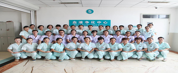 科室配备50台心电监护仪、4台除颤仪,有效地保证患者透析过程病情观察及急危重症抢救。血液净化中心有专职医生9人,其中主任医师1名,主治医师5名、医师3名。5名医生具有硕士学位。科室护理队伍37人。其中副主任护师2人,主管护师12人,护师23人。平均年龄34岁,朝气蓬勃、意气风发,在护理管理方面有着丰富的经验,是一支过硬的护理队伍。