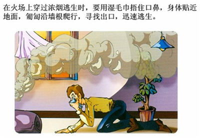 我们提醒大家,火灾逃生时务必正确保护呼吸道。由于火灾发生时烟气大多聚集在上部空间,在逃生过程中应尽量将身体贴近地面匍匐或弯腰前进。疏散中应用浸湿的毛巾、口罩等捂住口鼻,以起到降温及过滤的作用。